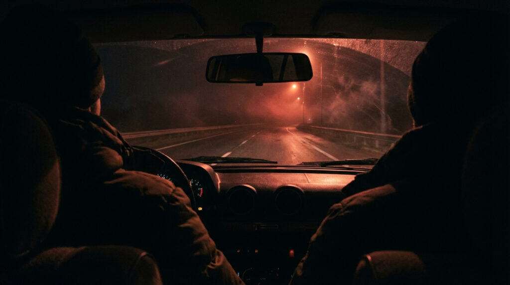 คืนนั้นเราออกเดินทางกลับจากต่างจังหวัดเกือบเที่ยงคืน ถนนเริ่มโล่งจนแทบไม่มีรถสวน ไฟข้างทางห่างออกไปทีละช่วง และความมืดก็ค่อยๆ เข้ามาแทนที่ทุกอย่างอย่างเงียบๆ เหลือเพียงแสงจากหน้ารถที่ส่องไปข้างหน้าเหมือนอุโมงค์แคบๆ ที่เราต้องขับผ่านไปให้พ้นโดยเร็วที่สุด